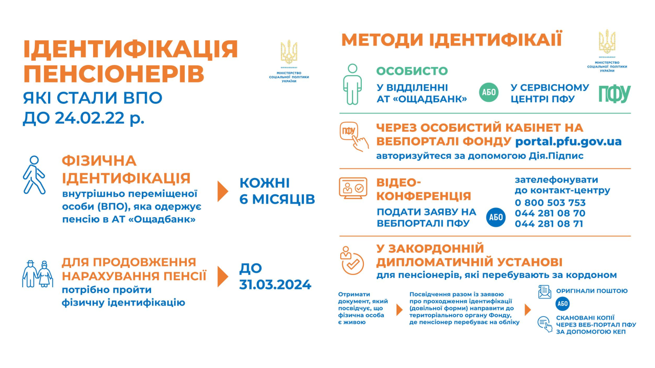 До 31 березня 2024 року усі пенсіонери-переселенці, які стали ВПО до 24 лютого 2022 року, мають пройти ідентифікацію