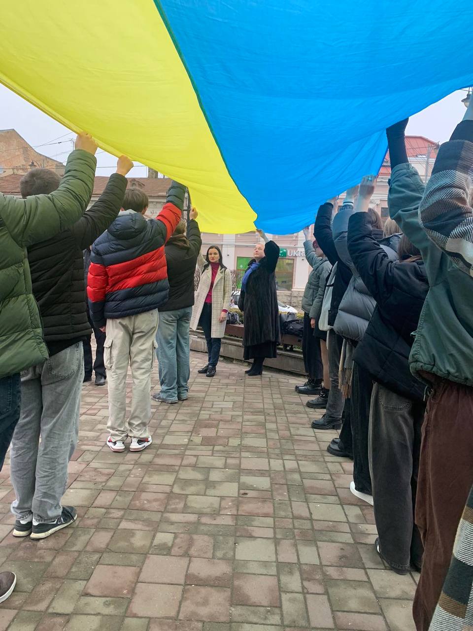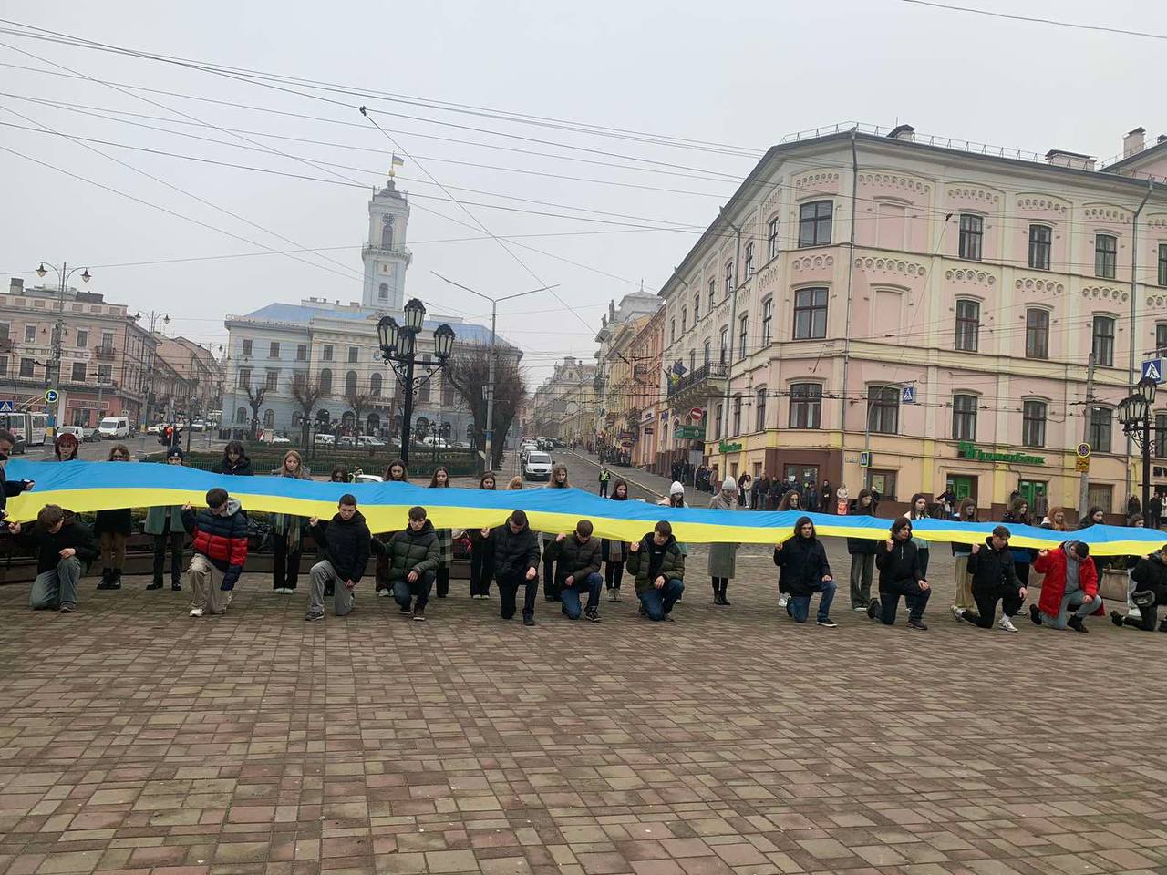 У Чернівцях під час всеукраїнської хвилини мовчання школярі ліцею №5 «Оріяна» розгорнули двадцятип’ятиметровий синьо-жовтий стяг.