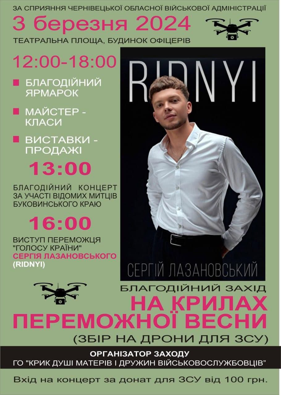 У Чернівцях 3 березня відбудеться благодійний захід «На крилах переможної весни».