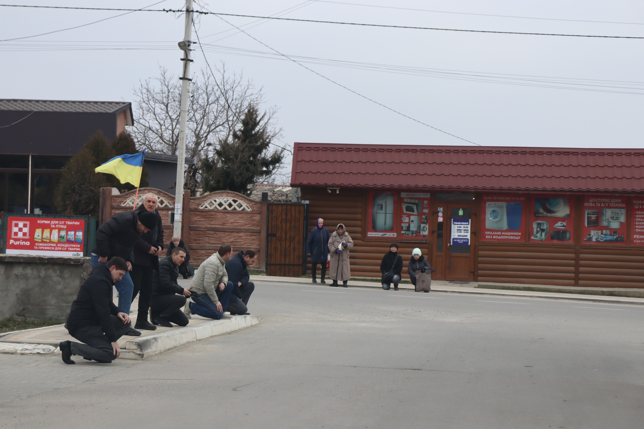 На колінах Сокирянська громада проводжала свого захисника в останню дорогу до рідного дому…