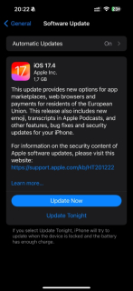 Крім того, Apple дозволила публікувати в App Store стрімінгові сервіси для ігор (Xbox Cloud Gaming, Nvidia GeForce NOW та ін.) В iOS 17.4 також з’явилися нові емодзі, стенограми подкастів, трохи оновлений браузер Safari, розширені налаштування Stolen Device Protectio і багато іншого. Розробники також виправили багато помилок в системі.