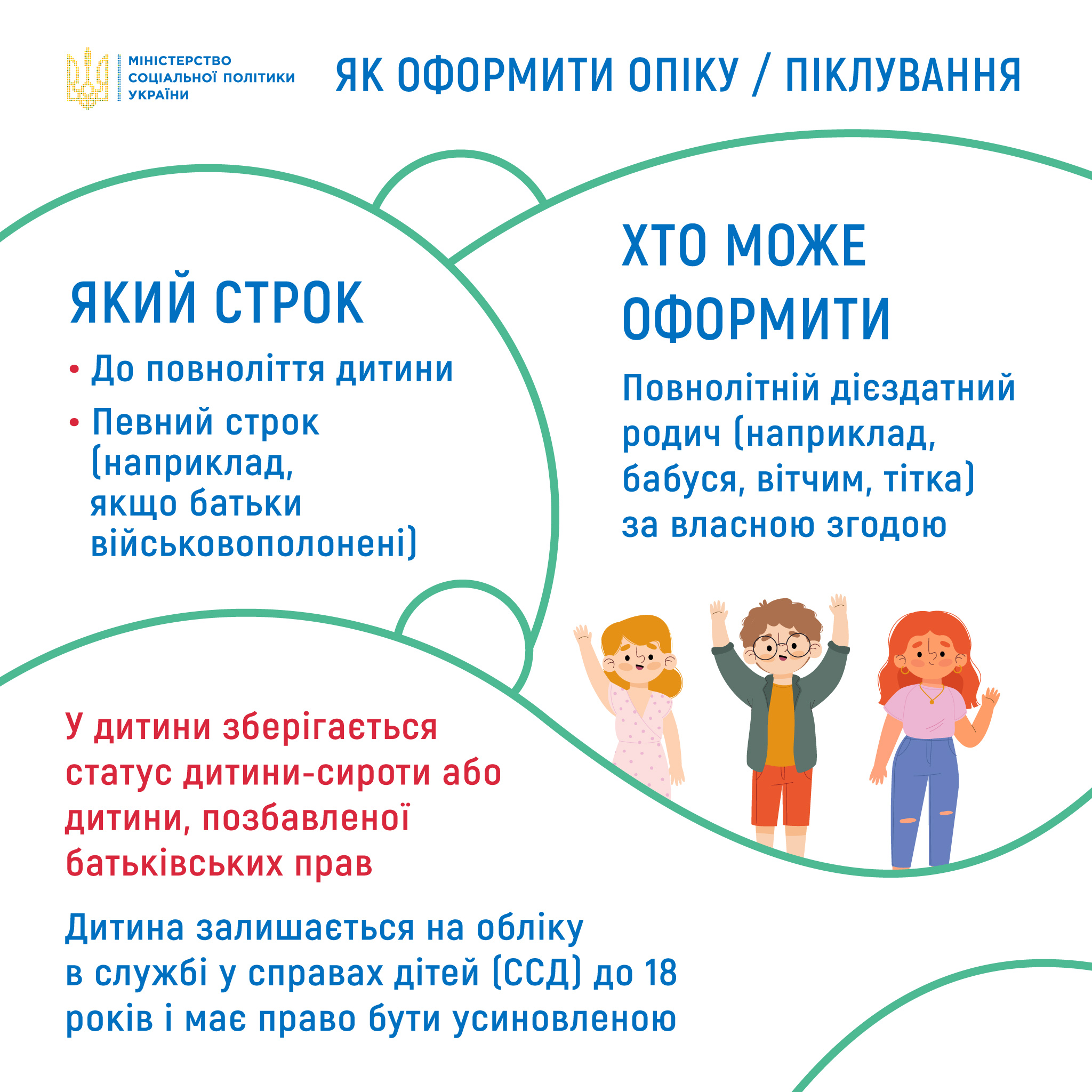 Про те, як оформити опіку або піклування, — дивіться в інфографіці і на сайті: https://bit.ly/3V6qSBz.