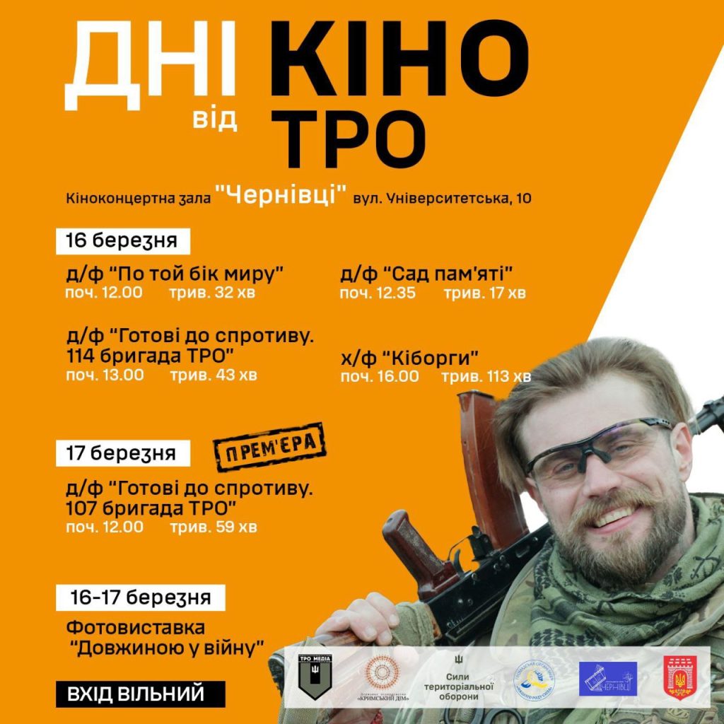 У Чернівцях на вихідних 16-17 березня у приміщенні кіноконцертної зали «Чернівці» відбудуться «Дні кіно від ТРО».