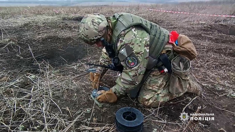 Поліцейські-вибухотехніки з Буковини перевіряють кожен метр відвойованої землі, виявляють міни, нерозірвані снаряди та інші боєприпаси, якими ворог замінував нашу землю.
