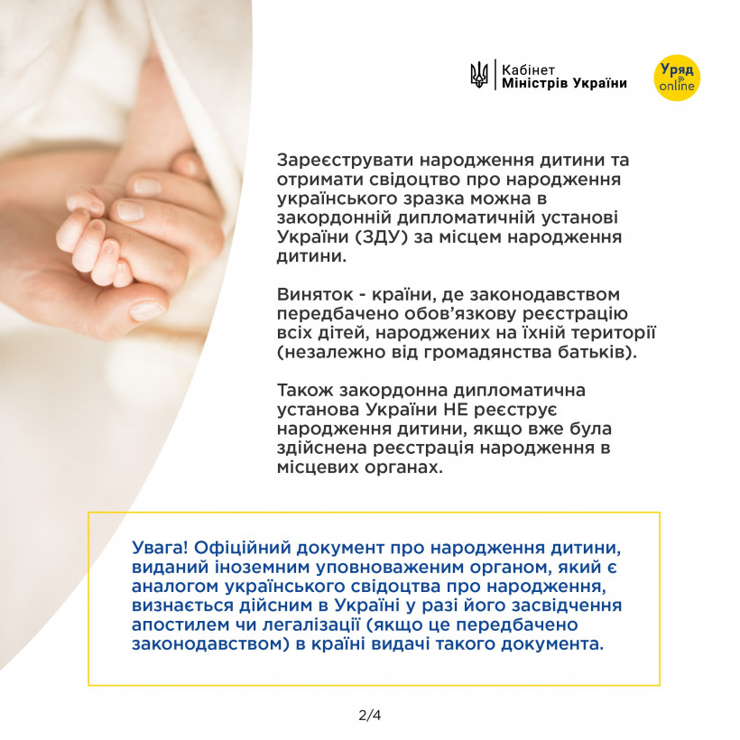 Як отримати свідоцтво про народження дитини, яка народилася за кордоном у громадян України?
