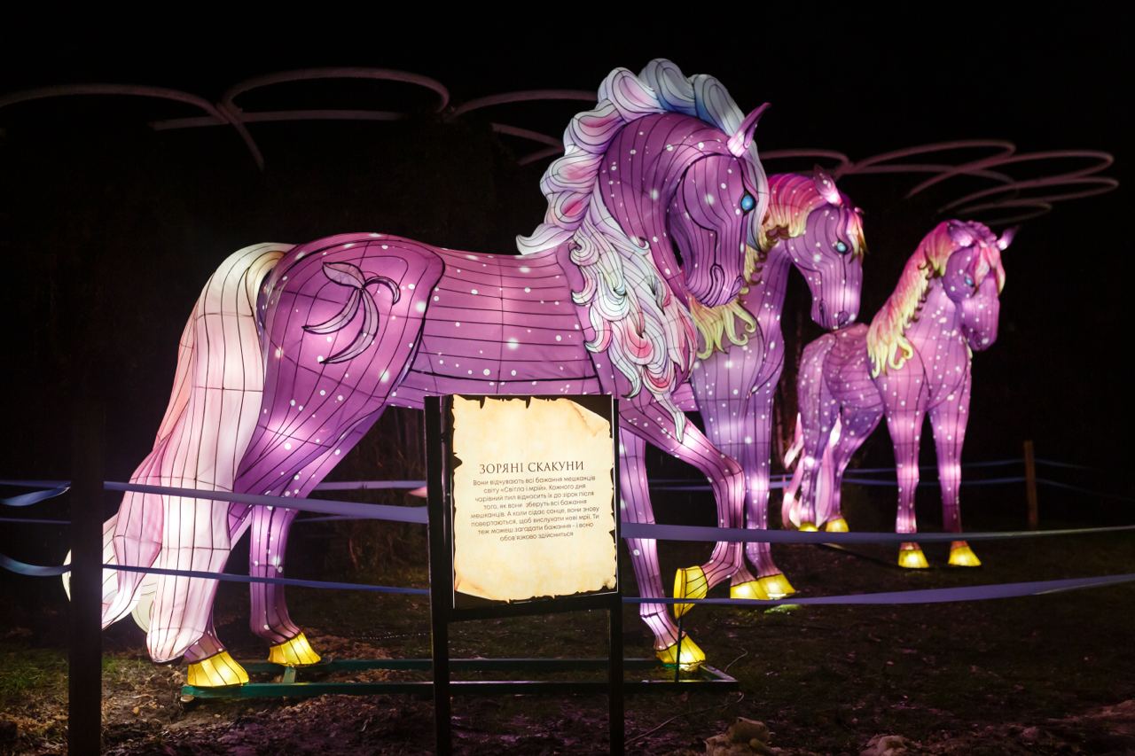 На відвідувачів чекає тематичний парк ілюмінацій і масштабних світлових інсталяцій, кожна з яких сягає до семи метрів заввишки. За словами організаторів, всі фігури виготовлені вручну з 50 000 ліхтариків, натурального шовку та спеціальних led-ламп.