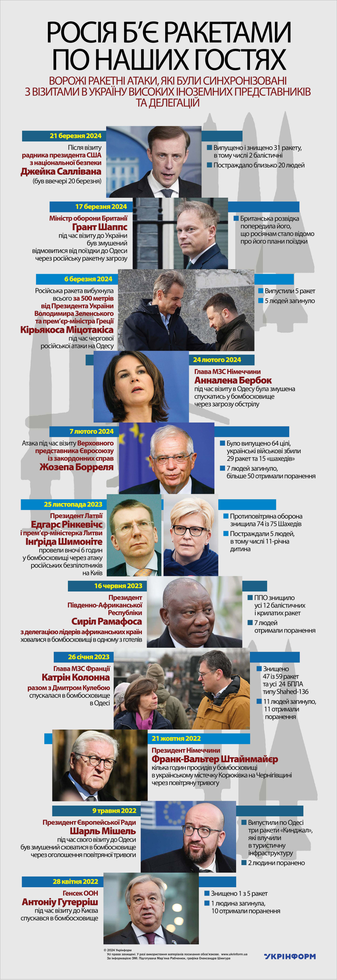 Ворожі ракетні атаки, які були синхронізовані з візитами в Україну високих іноземних представників та делегацій