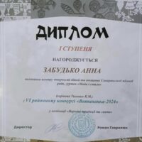 У номінації «Народні традиції та свята» Дипломом І ступеня відзначено Анну Забудько.
