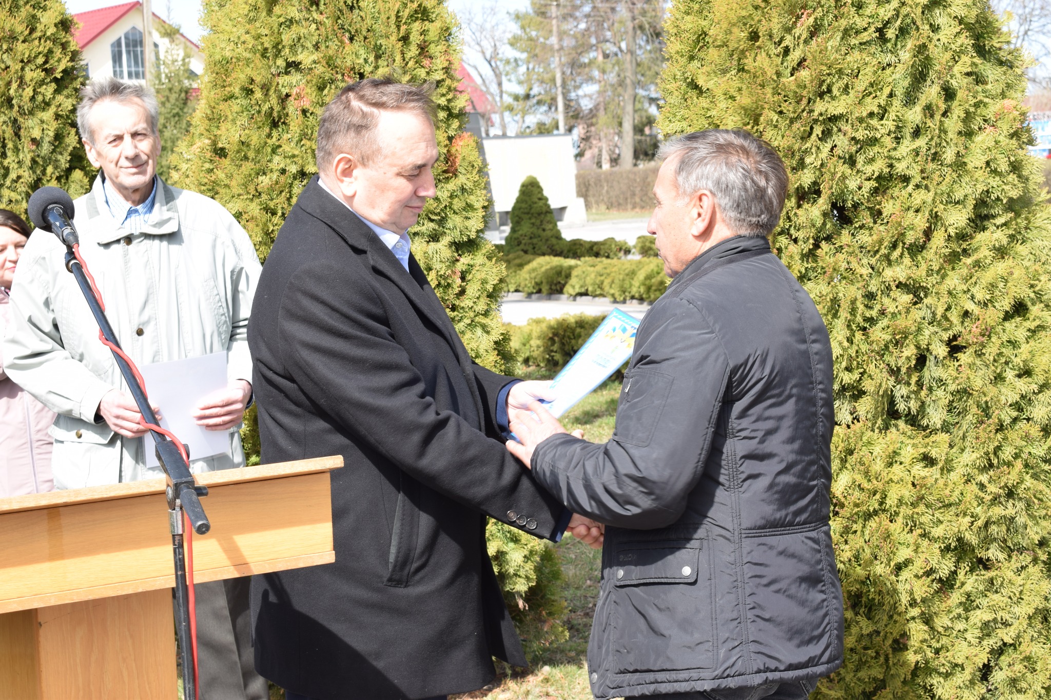 Міський голова вручив Подяки Сокирянської міської ради тим, хто доклав зусиль та рук для спорудження пам’ятного знаку – краєзнавцю Олександру Чорному, колективу КП «Сокиряни-благоустрій» та підприємцю Геннадію Шатковському.