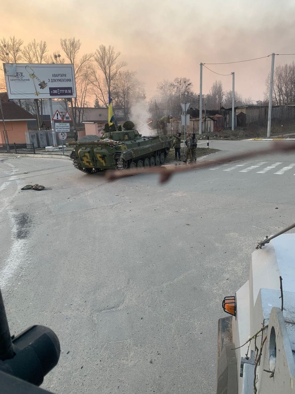 – У перший день, коли ми прибули в Ірпінь, у нас було завдання завести військово-тактичну групу для того, щоб наші змогли перегрупуватися. Потрібно було бійцям поновити сили, – розповідає військовий. – Ми мали на себе відволікати увагу ворога, а тим часом наші бійці займали свої позиції. Години з три ми їздили за маршрутом, яке визначило командування. Брали на себе вогонь, щоб наші війська могли перегрупуватися.