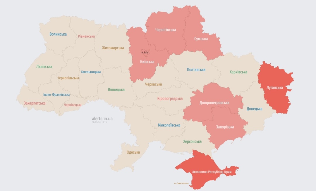 Скриншот з сайту alerts.in.ua станом на 19:13