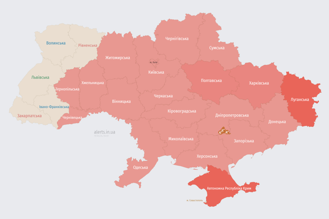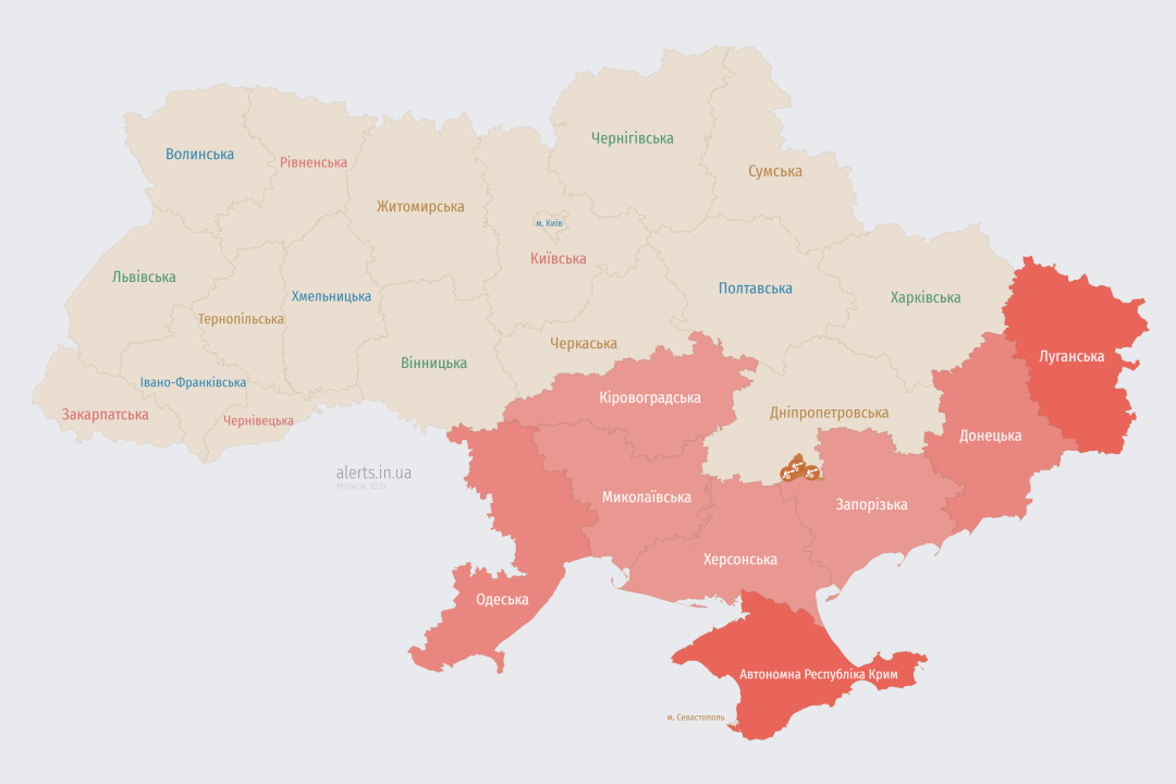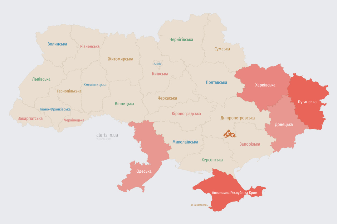 В Україні ввечері, 18 квітня у деяких областях оголошували повітряну тривогу. Це пов'язано із загрозою застосування противником ударних дронів та тактичної авіації.
