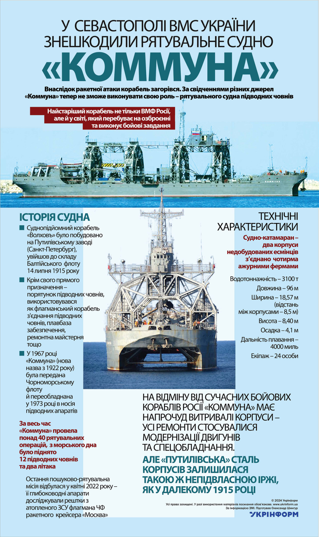 23.04/ ІНФОГРАФІКА. У Севастополі ВМС України знешкодили рятувальне судно «Коммуна»