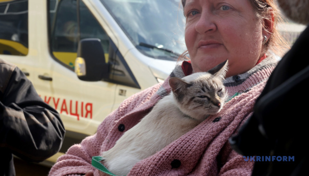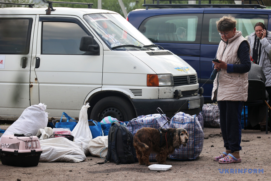 У кількох сумках кожного вимушеного переселенця – все, що вдалося прихопити з дому на перший час. Також люди забирають з собою домашніх тварин і евакуюються, щоб надалі не наражати своє життя на ризик під час постійних щільних обстрілів загарбників.