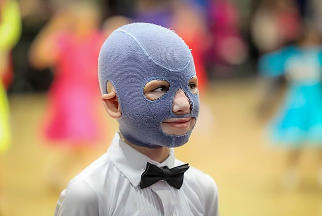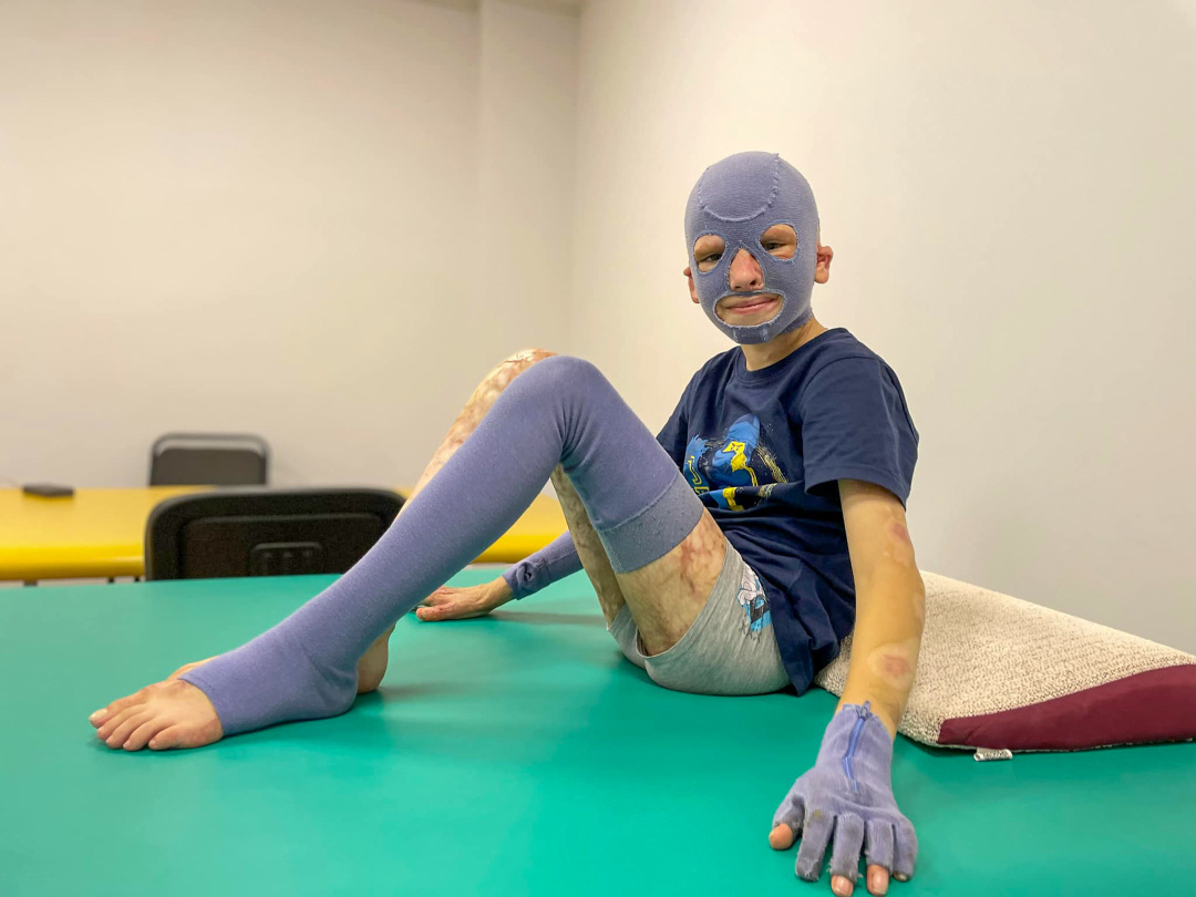 Ромчик носить на обличчі, руках та ногах спеціальні компресійні маски, які притискають рубці, щоб ті не розширювалися. Як зазначають медики, така тенденція зберігається впродовж двох років. Тож уже скоро хлопчик зможе обійтися без стискальної синьої тканини.