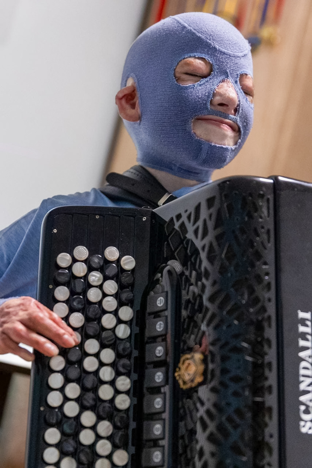 У Дрездені Роман швидко вивчив мову і навчається у двох школах: до обіду – офлайн у німецькій, а після обіду – онлайн в українській. Восени вони з татом були у Львові, і хлопчик зміг повернутися у свій рідний клас та відновити заняття бальними танцями. А ще постійно практикується у грі на баяні. Тепер для Романа баян і танці – це не просто хобі, а й реабілітація: так розминаються його ослаблені пальці та м'язи травмованих руки та ноги.