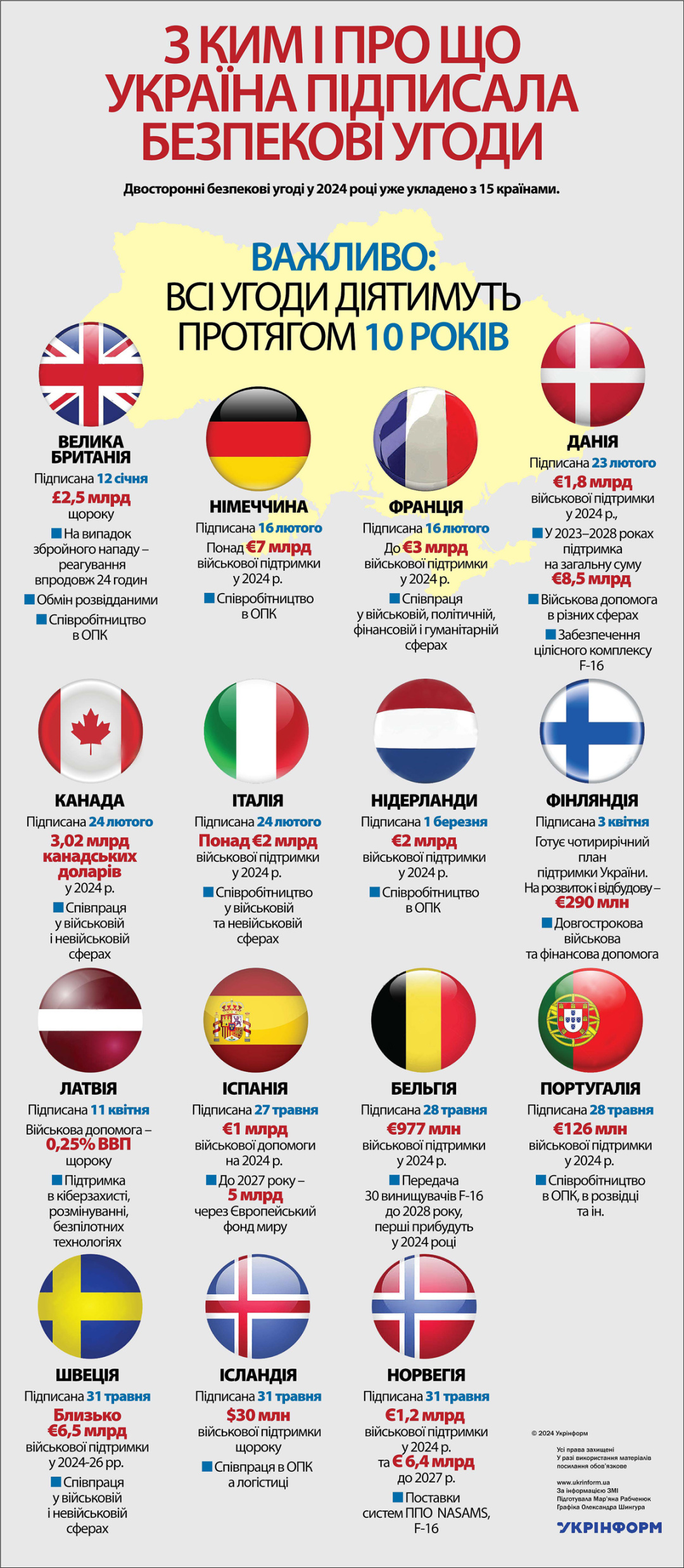 31.05/ ІНФОГРАФІКА/ З ким і про що Україна підписала безпекові угоди