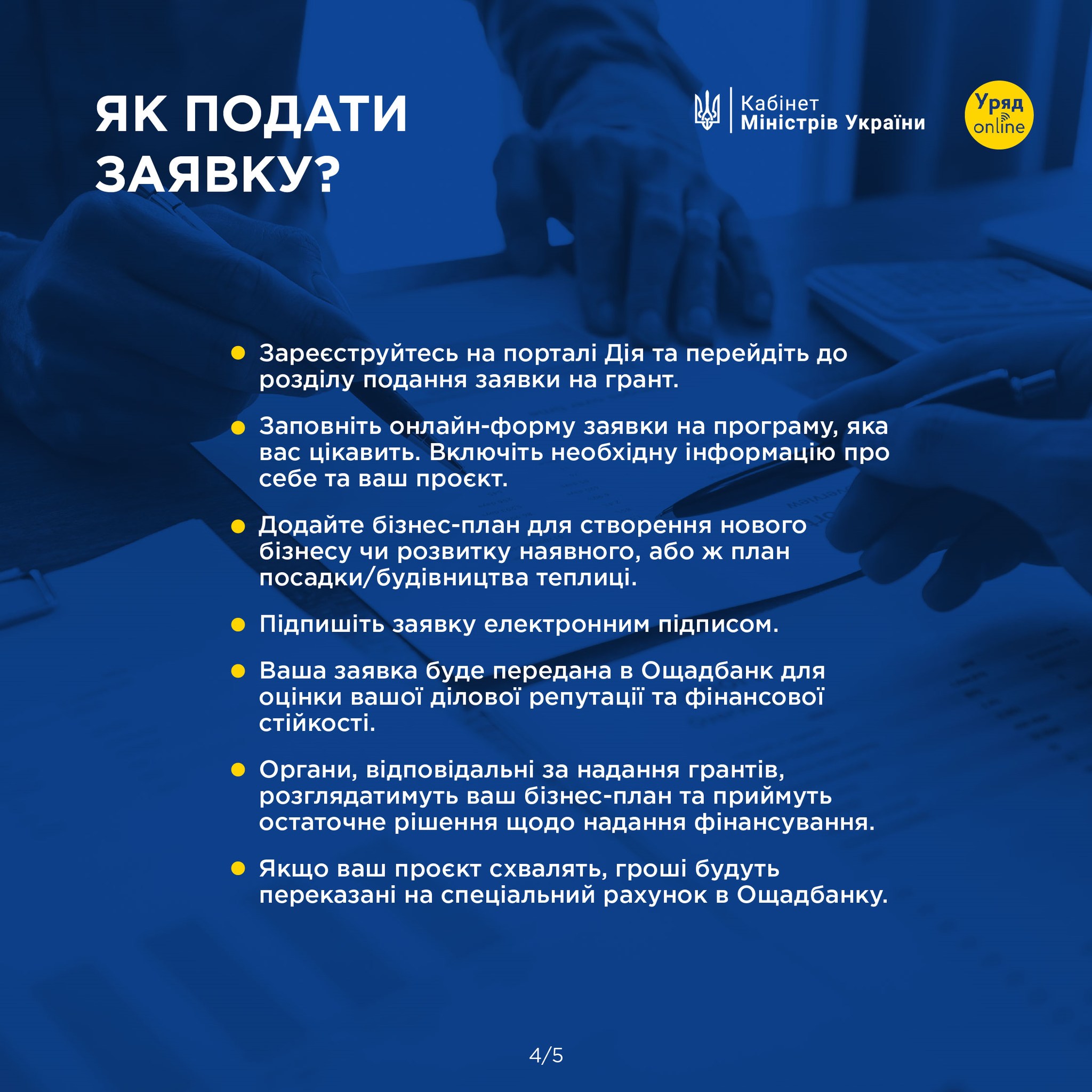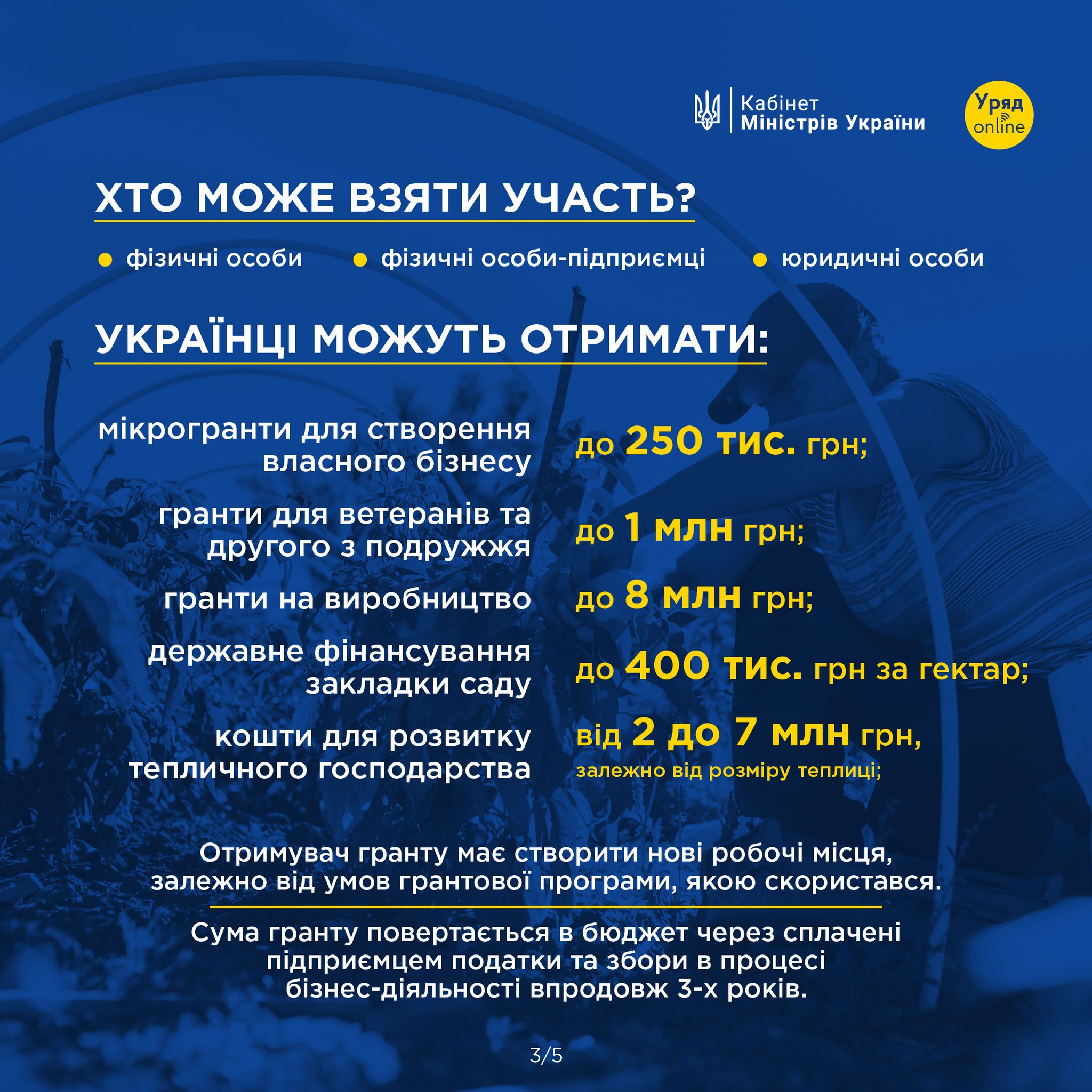 250 тис. грн – на створення власного бізнесу, або 7 млн грн – для розвитку тепличного господарства.