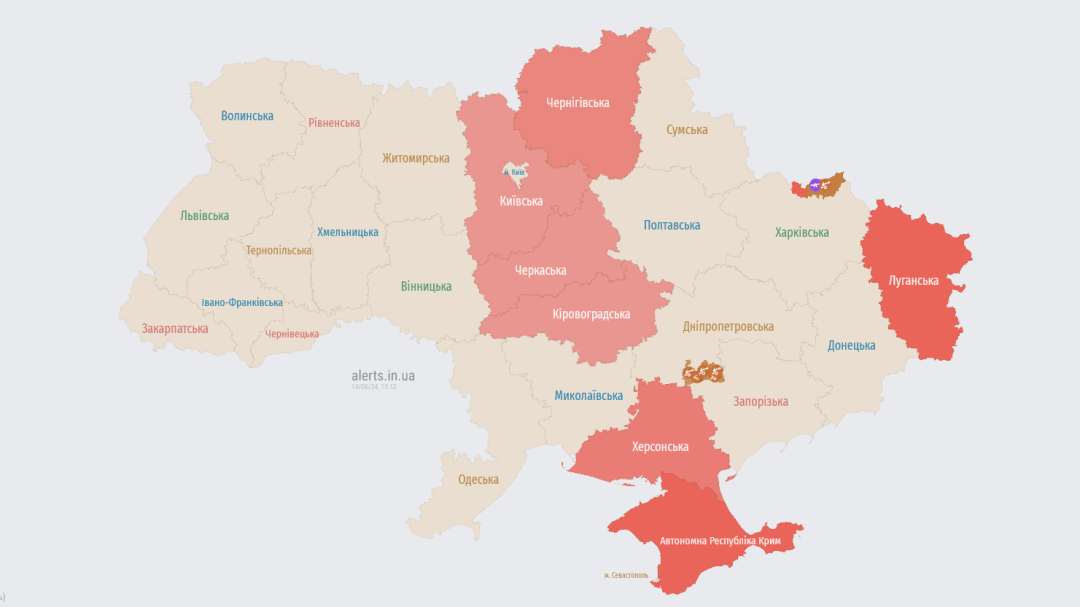 У Київській області та в низці інших регіонів оголошена повітряна тривога через ракетну небезпеку.