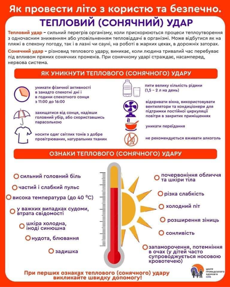При перших ознаках теплового (сонячного) удару викликайте швидку допомогу!