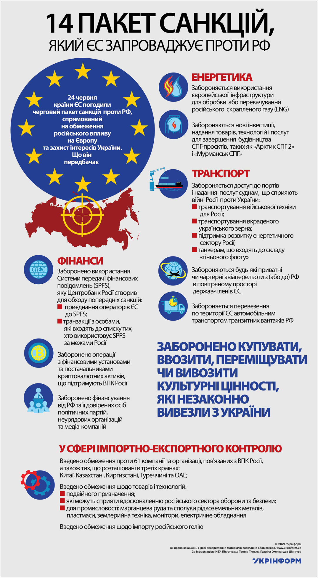 27.06/ ІНФОГРАФІКА/ 14-й пакет санкцій, який ЄС запроваджує проти РФ