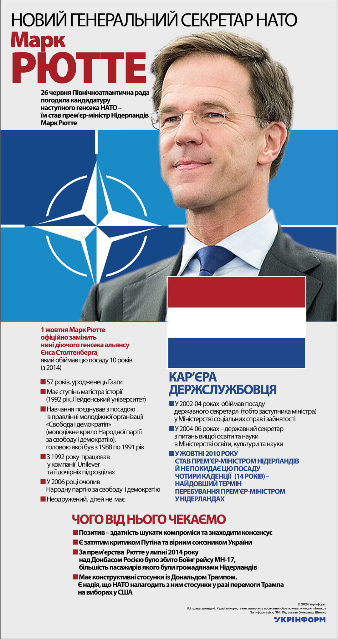 26.06/ ІНФОГРАФІКА/ Новий генеральний секретар НАТО Марк Рютте