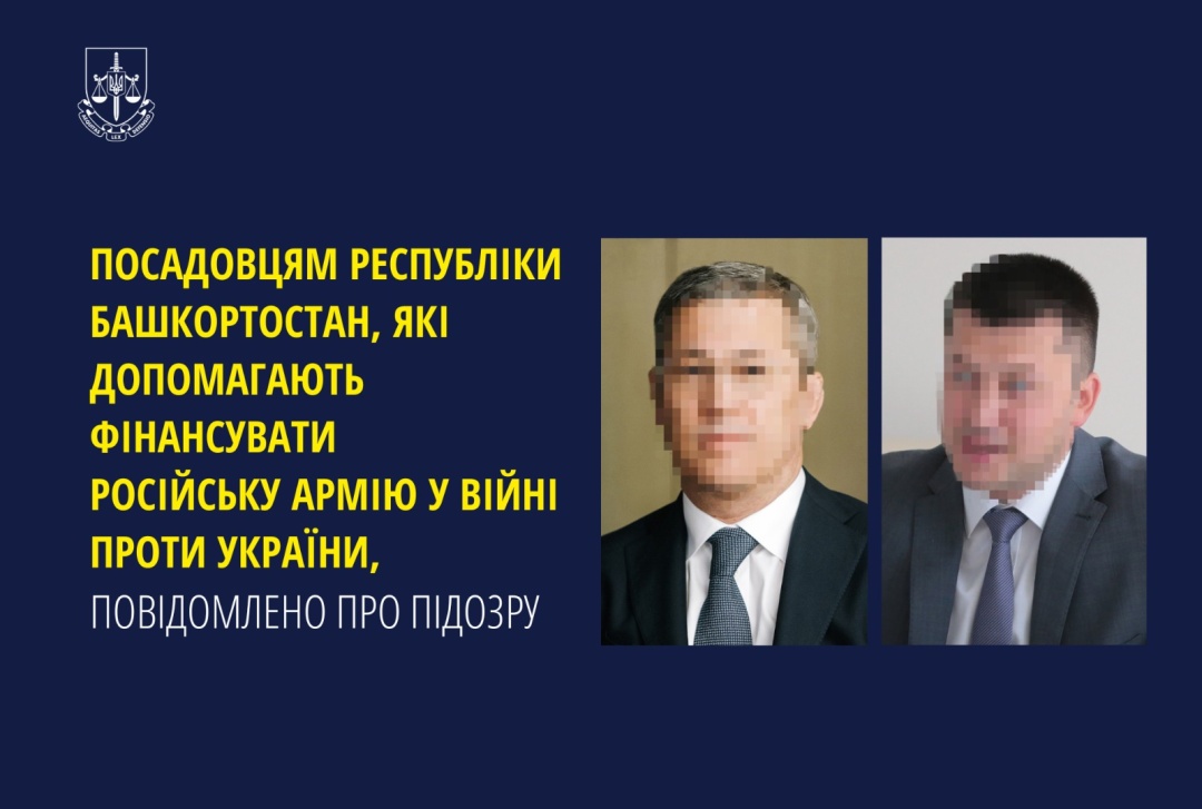 Очільнику Республіки Башкортостан і голові адміністрації міського округу Уфи, які допомагають фінансувати російську армію у війні проти України, повідомили про підозру.