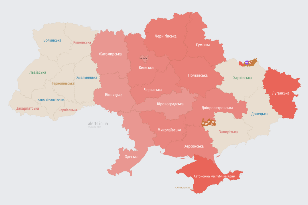 У столиці та низці північних, центральних і південних регіонів було оголошено повітряну тривогу у зв'язку з атакою ворожих дронів.