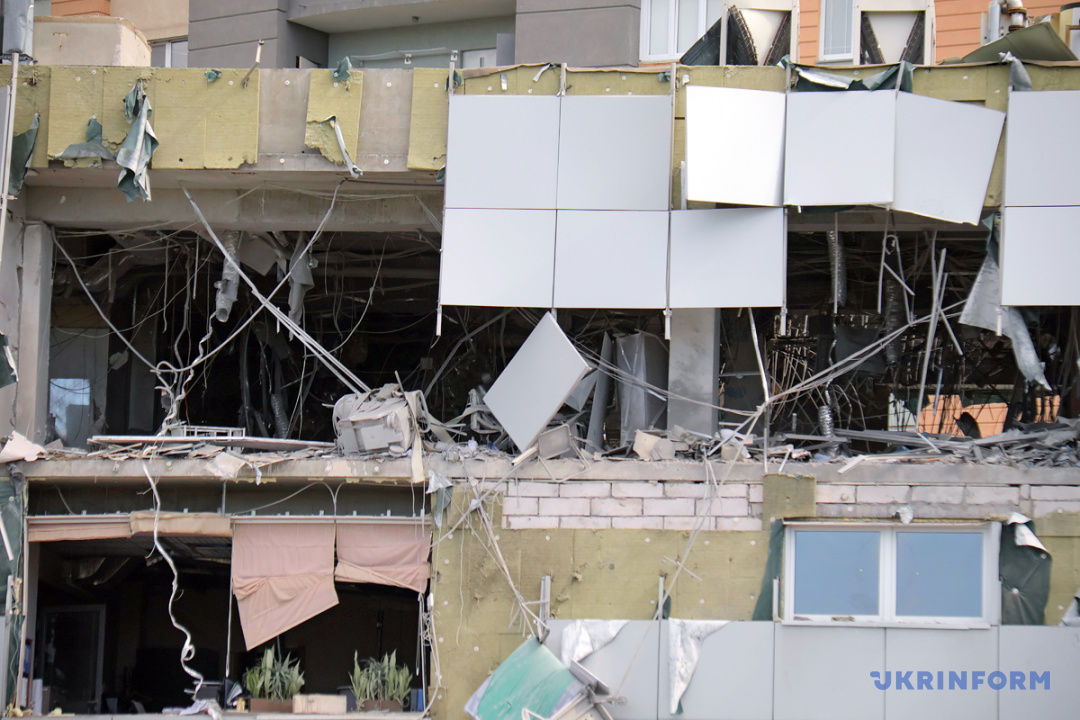 У Дніпровському районі частково зруйновано 4-поверхову будівлю медичного центру. Загинуло восьмеро людей, четверо постраждали, тривають роботи з розбирання завалів та пошуку людей.