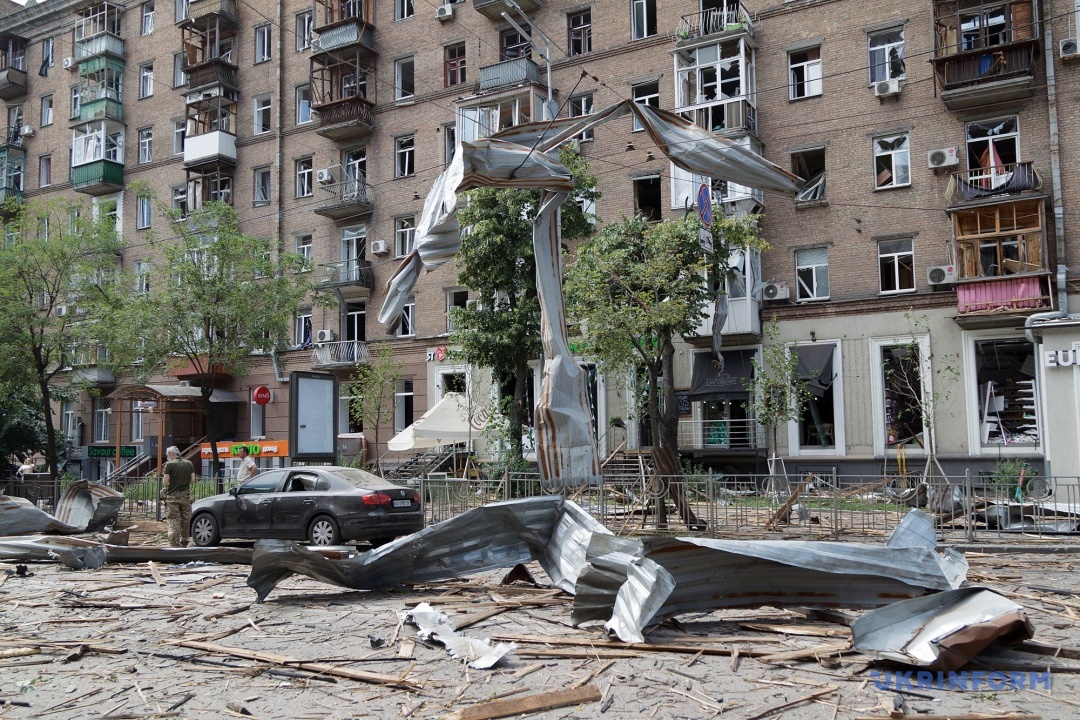 У Дніпровському районі частково зруйновано 4-поверхову будівлю медичного центру. Загинуло восьмеро людей, четверо постраждали, тривають роботи з розбирання завалів та пошуку людей.