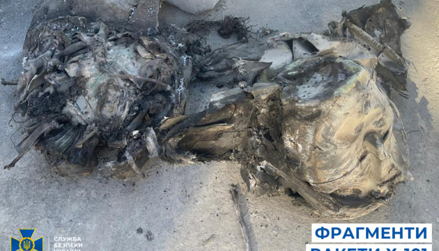 "Зокрема, на місці трагедії знайдено уламок двигуна крилатої ракети Х-101. Окрім того, слідчі СБУ виявили: уламок механізму розкриття крил ракети Х-101; уламок блоку постановки завад ракети Х-101; середню частину корпусу крилатої ракети Х-101 (на фото під завалами); обтікач хвостового відсіку та уламок гідроблока крилатої ракети Х-101; уламки кожуха двигуна крилатої ракети Х-101 із відображенням інвентарного (внутрішня сторона) та серійного номерів (зовнішня сторона), фото яких ми офіційно публікували вчора", – йдеться у повідомленні.