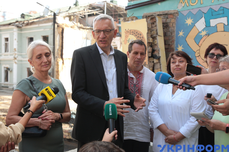 19.07/ Дипломати з Німеччини оглянули руйнування на території дитячої лікарні «Охматдит» у Києві