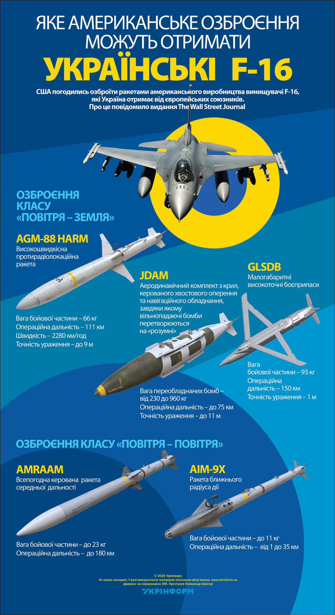 США погодились озброїти ракетами американського виробництва винищувачі F-16, які Україна отримає від європейських союзників. Про це повідомило видання The Wall Street Journal