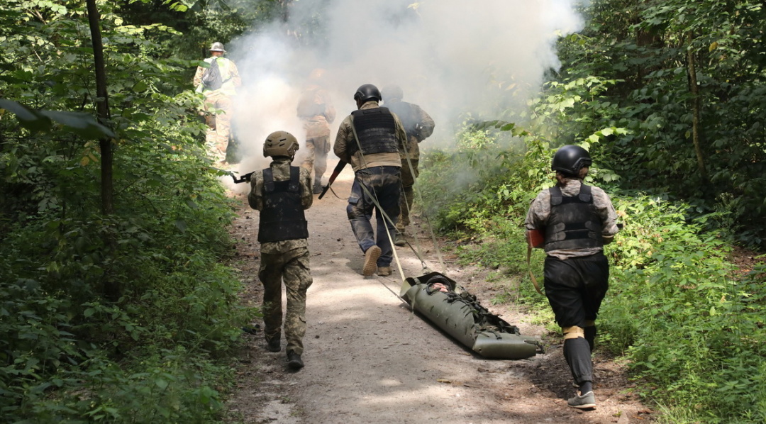 На тренуванні з евакуації пораненого