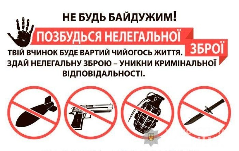 Громадяни, які володіють зброєю без передбачених законом дозволів, можуть здати її до найближчого відділу чи відділення поліції.
