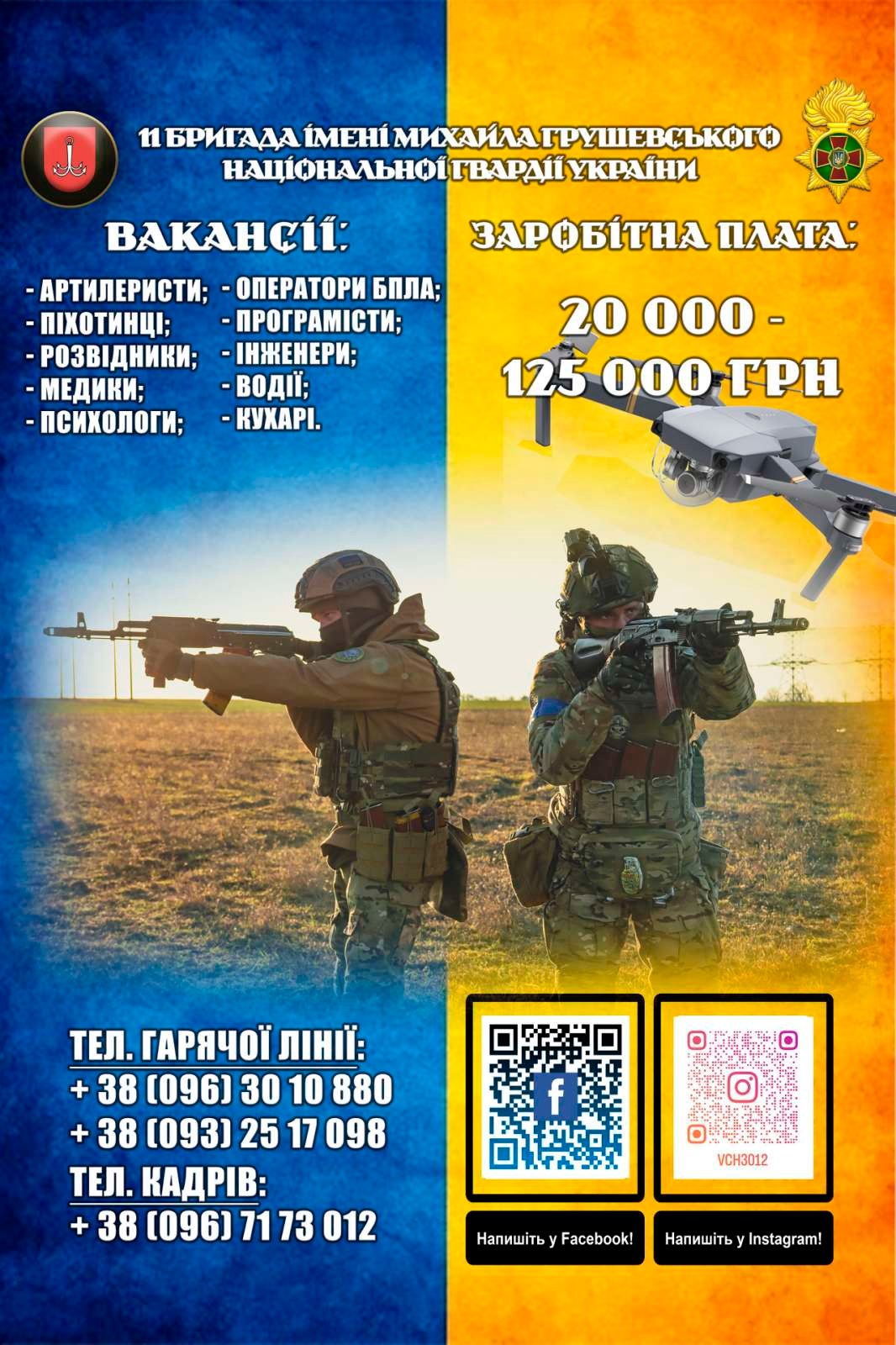 11 Бригада імені Михайла Грушевського Національної гвардії України запрошує на службу: