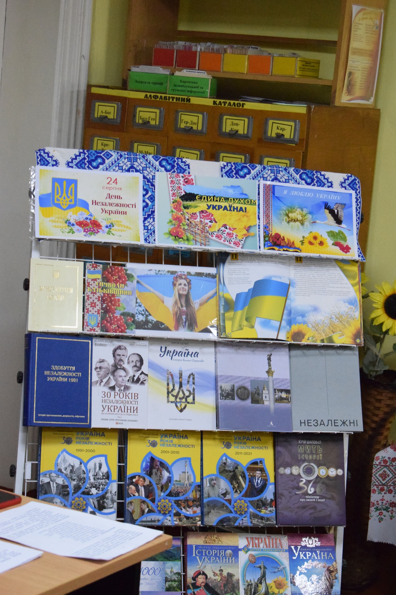 На базі бібліотеки діє національно-патріотична виставка, представлені книги якої присвячені важливим аспектам і темам державотворення, здобуття незалежності України та національній символіці.