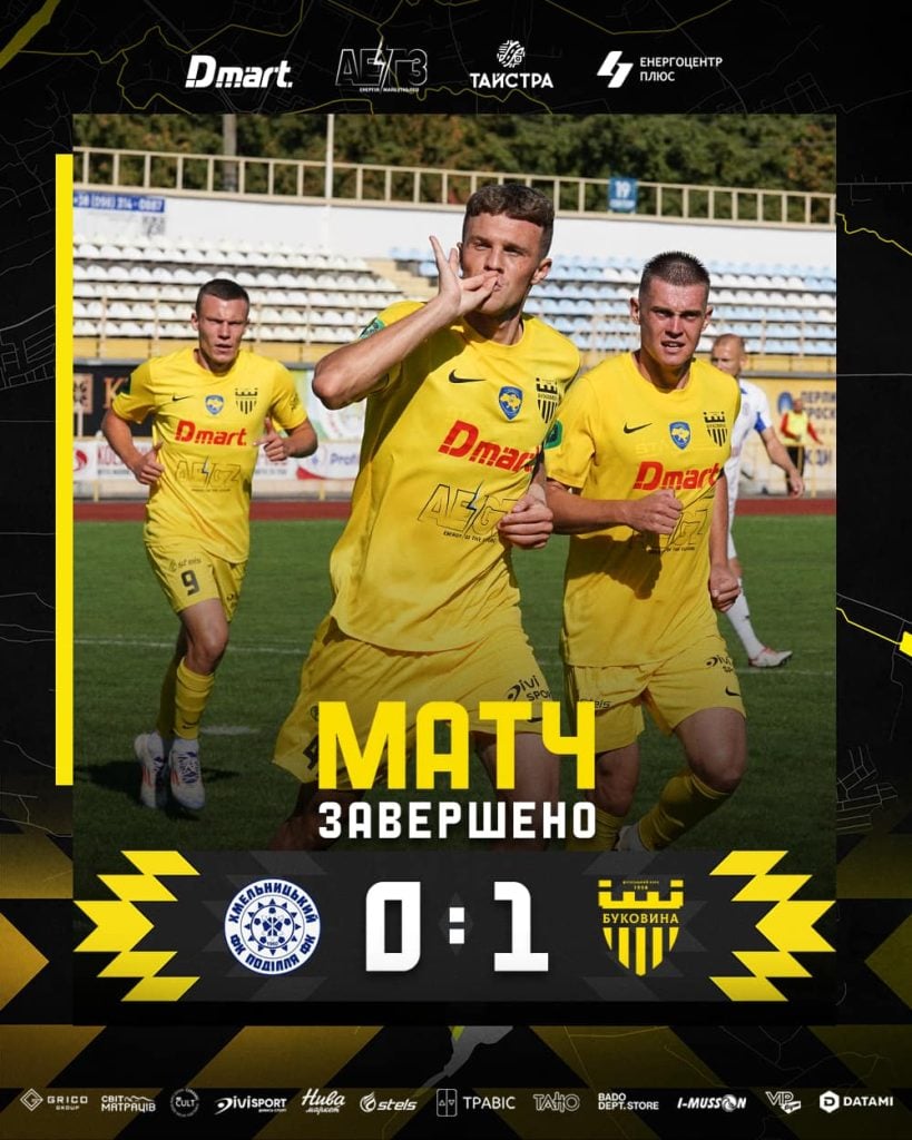 Футбольний клуб «Буковина» сьогодні, 25 серпня, на виїзді переміг хмельницький клуб «Поділля» з рахунком 0:1. Матч третього туру Першої ліги відбувся у Хмельницькому.