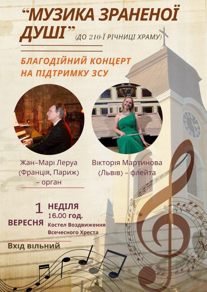 У Чернівцях відбудеться благодійний концерт «Музика зраненої душі» на підтримку ЗСУ. Він буде присвячений 210-річниці римо-католицького костелу Воздвиження Всечесного Хреста.