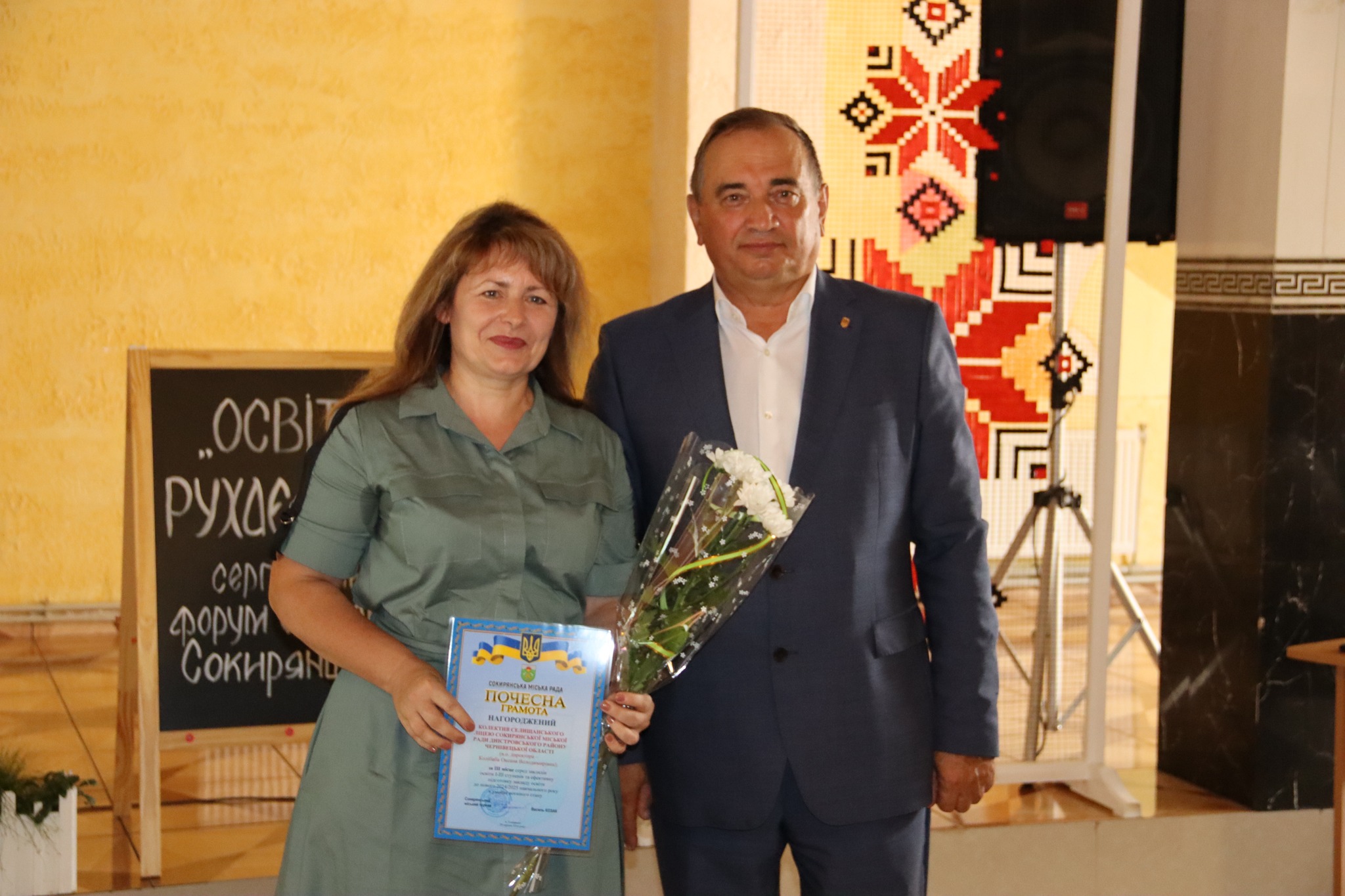 «Праця вчителя важка і надзвичайно відповідальна, але, як показує практика, вам під силу долати будь-які труднощі і виклики. Цей навчальний рік не буде легким. Але галузь освіти була і залишається пріоритетним напрямком нашої роботи, адже діти – це наше майбутнє. Ми докладатимемо максимум зусиль, щоб учні та вихованці закладів освіти громади продовжували здобувати якісну освіту попри на виклики сьогодення» – зазначив міський голова та відзначив Почесними грамотами Сокирянської міської ради педагогічні колективи та окремих освітян – за плідні результати роботи у минулому навчальному році та вагомий особистий внесок у навчання та виховання підростаючого покоління.
