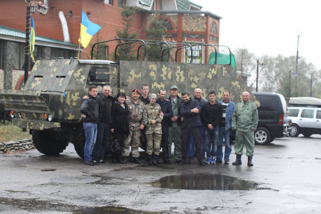 У вересні 2014 року Іванківський «Народний оборонпром» відправив у зону АТО броньовану машину «Буян». Петро Примаченко другий ліворуч.