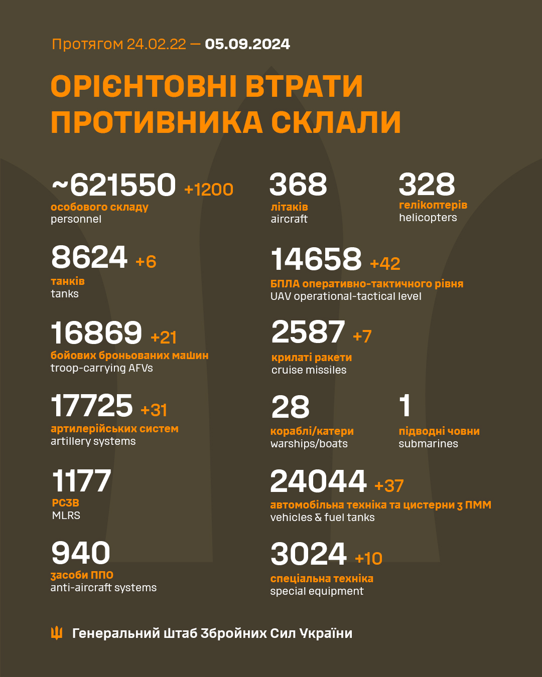 Ми зібрали для вас інформацію про дев’ятсот двадцять п’ятий день Великої війни: чим жили Україна та українці 5 вересня 2024 року.