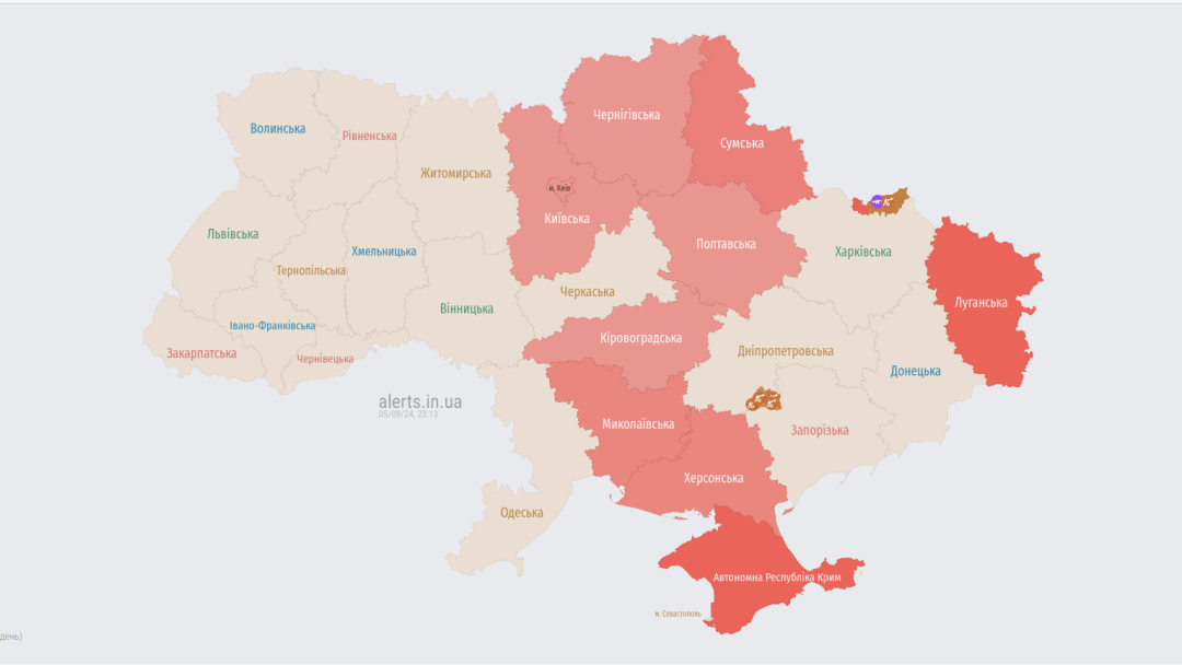 Карта повітряних тривог станом на 23:14