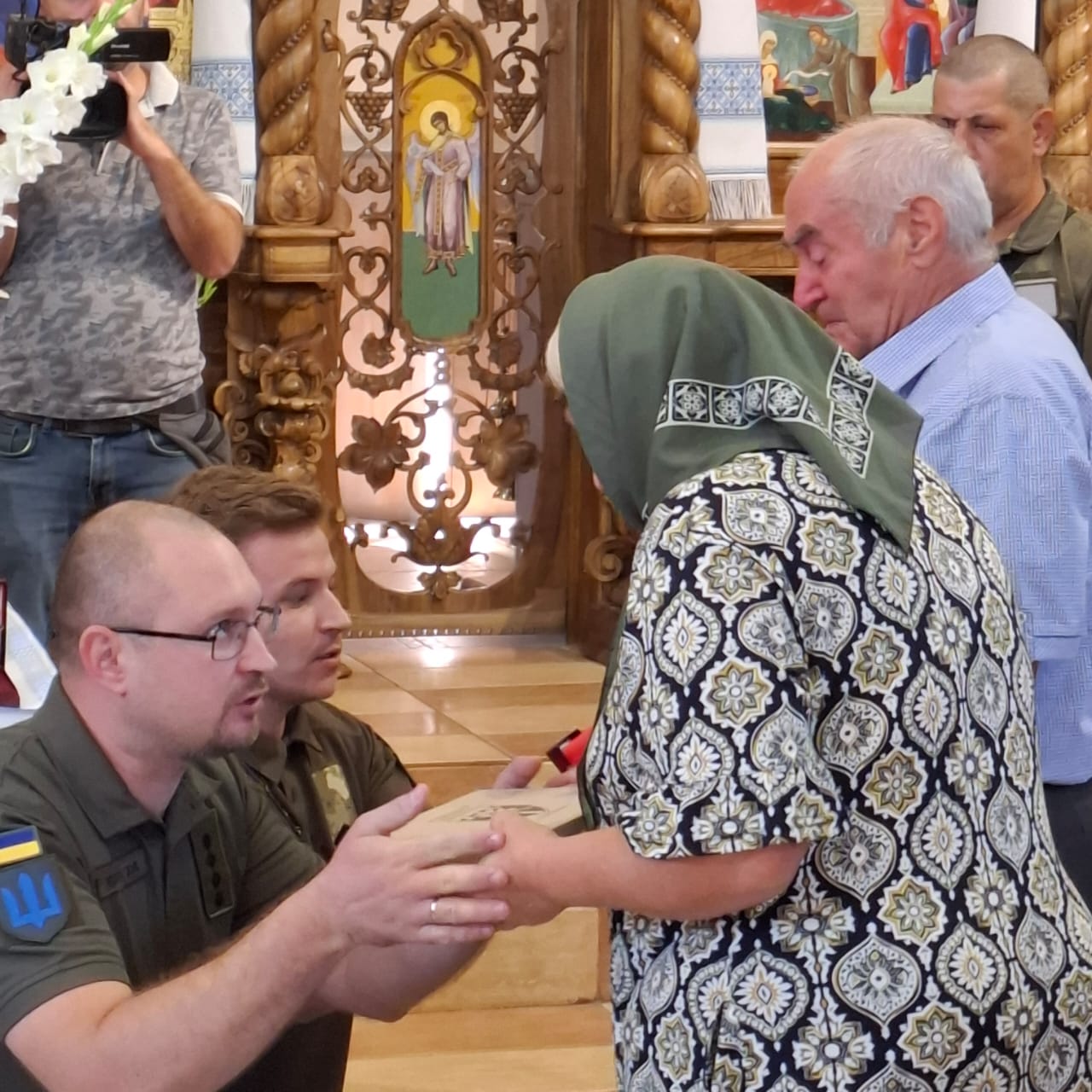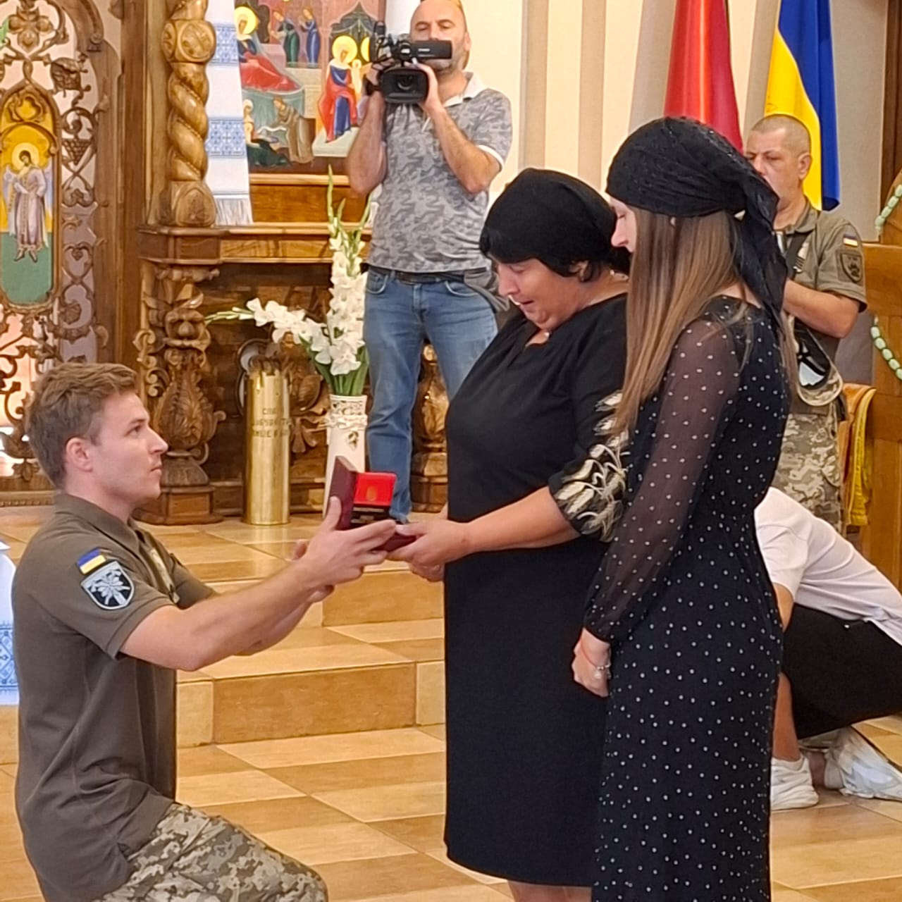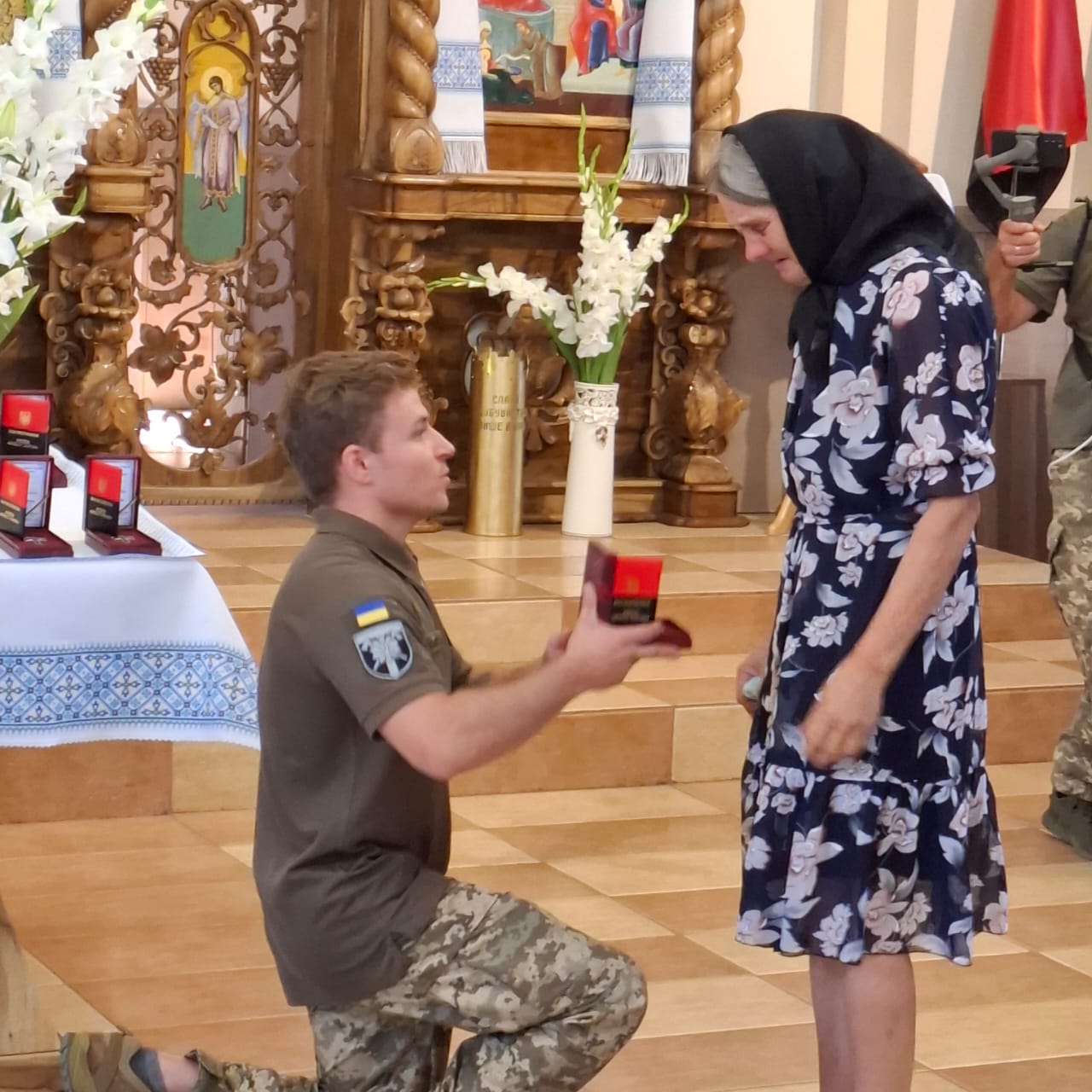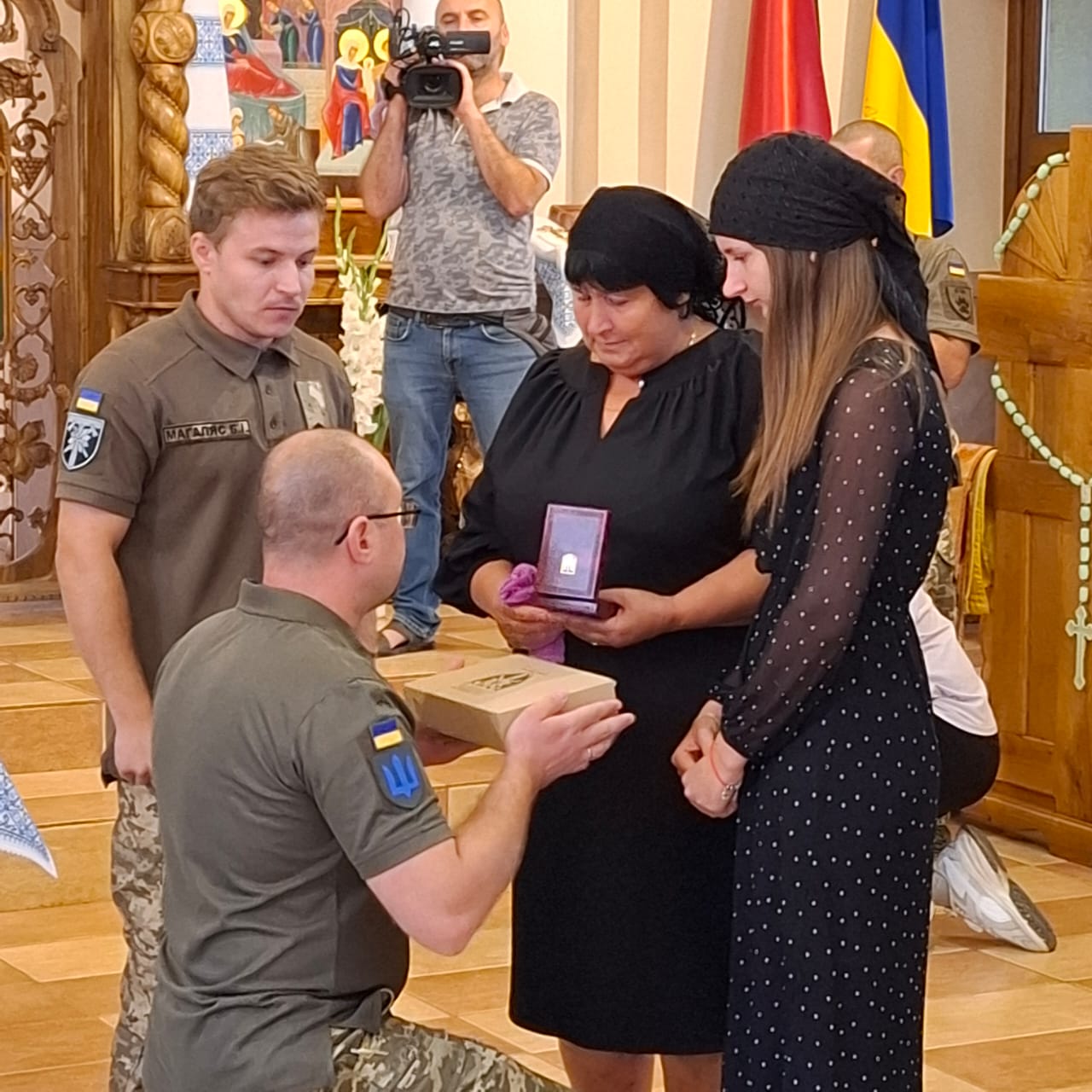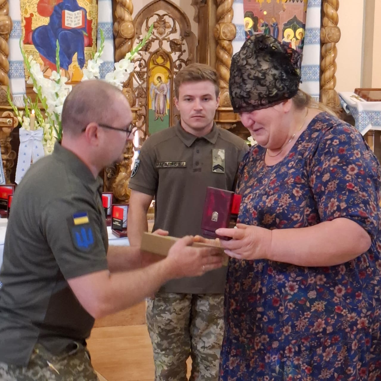 Після молебню рідним та близьким загиблих воїнів вручили відзнаки «Хрест Героя» – нагороду, яку започаткували побратими з 24-ї окремої механізованої бригади ім. короля Данила спільно із Всеукраїнським об’єднанням «Ми Українці». Наказом командира 128 ОГШБр полеглих воїнів посмертно нагороджено за проявлену мужність, героїзм та незламність духу. Дані про кожного нагородженого військовослужбовця записуються в «Книгу пам’яті», яка зберігається в штабі бригади.