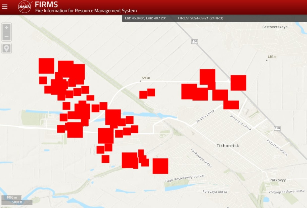 Крім того, масштабні пожежі фіксуються біля міста Тихорецьк у Краснодарському країн – як на складі боєприпасів, так і розташованому поруч аеродромі.