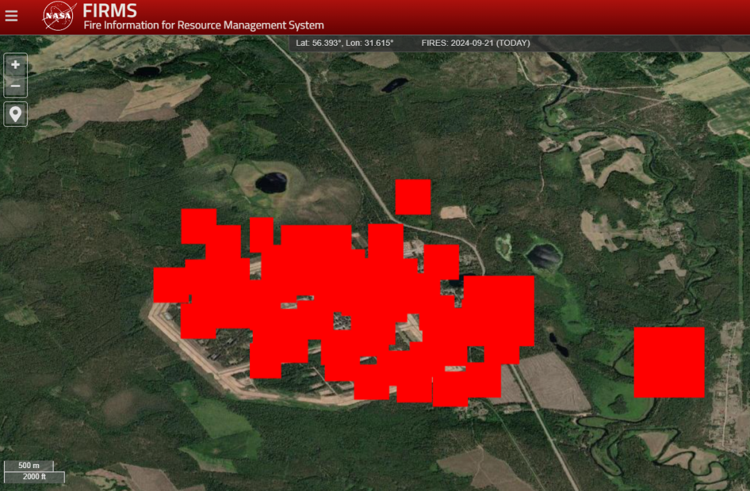 Супутники NASA фіксують масштабні пожежі на обох уражених складах боєприпасів у РФ