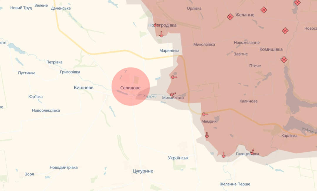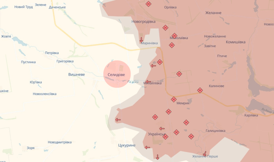 Паралельно виникне ще більша загроза для Селидового: «Це вже Покровський виступ безпосередньо. Там потроху теж окупанти намагаються його охопити. Там не так, як зараз у Вугледарі. Там ці кліщі формуються, але видно, як вони формуються і з яких напрямків».