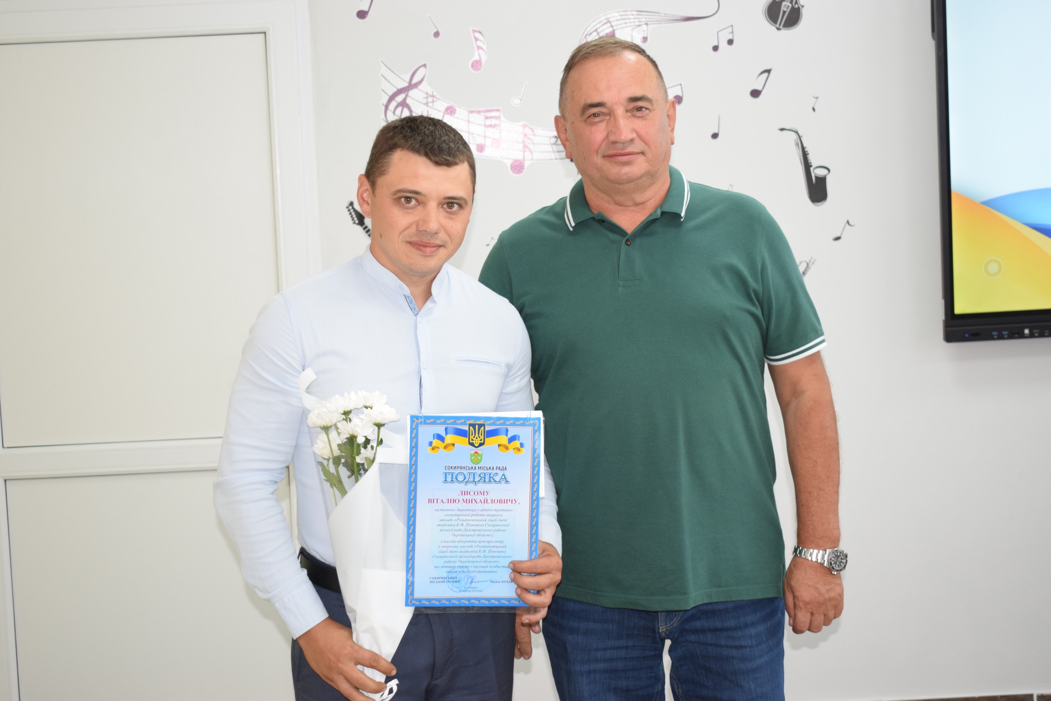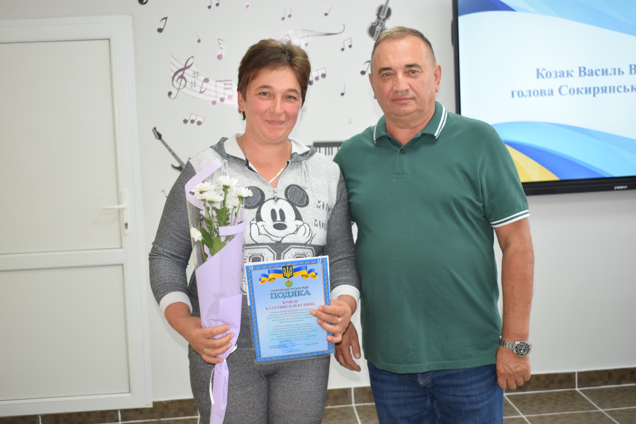 Міський голова Василь Козак висловив слова вдячності тим, хто безпосередньо своїми руками брав участь в облаштуванні простору, та нагородив Подяками Сокирянської міської ради працівників технічного персоналу закладу освіти: Катерину Кувілу, Віталія Лисого, Олега Романчука, Альвіну Руснак, Миколу Хорошенюка та Марію Щербату.