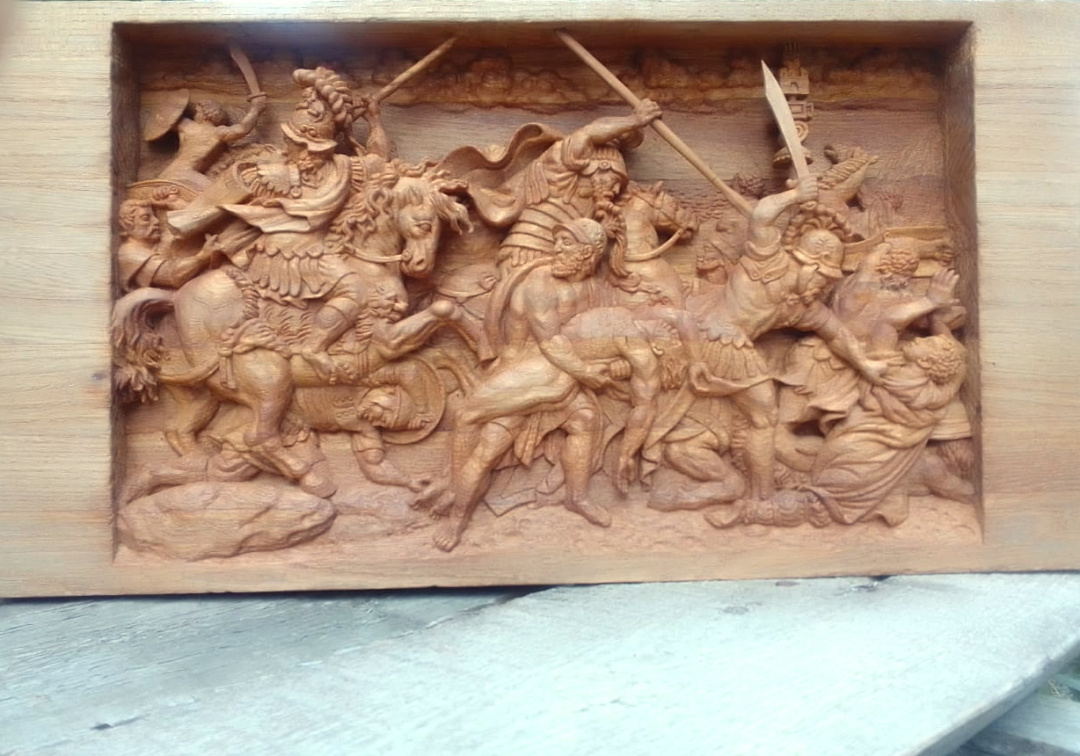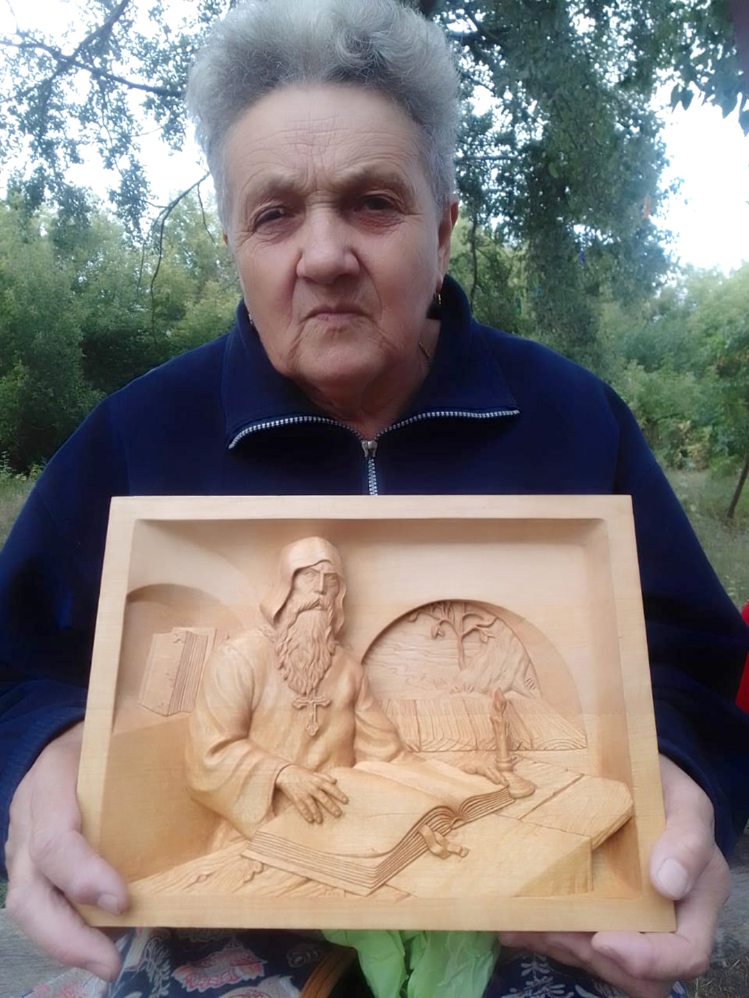 – Змалечку гарно малював, а в школі пішов у гурток різьблення. Навчився працювати з деревом, і згодом це стало спеціальністю. Після служби в армії він майже 12 років працював у Харкові на столярці – робив на замовлення красиві речі. Вирізав ікони, але найбільше любив якісь батальні сцени – бої козаків чи давніх римлян. Там така тонка робота, настільки деталізовані картини! – розповідає жінка.