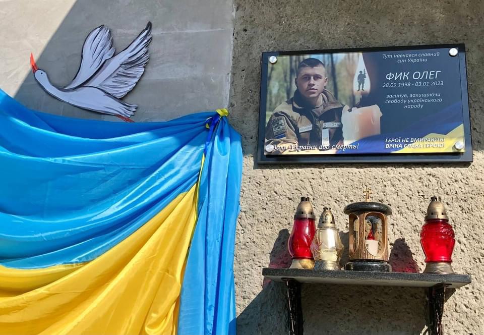 У пам’ять про загиблого Козівська громада Тернопільської області відкрила меморіальну дошку на фасаді ліцею, у якому навчався Олег.